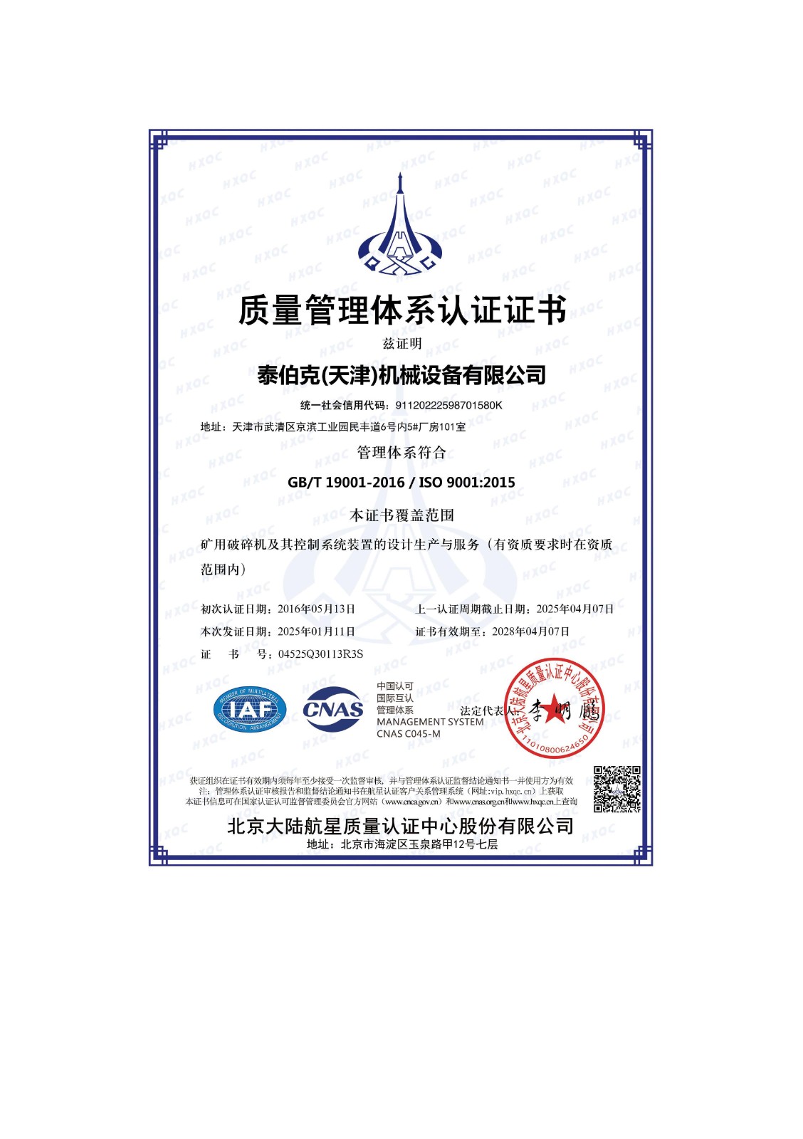 质量管理体系证书